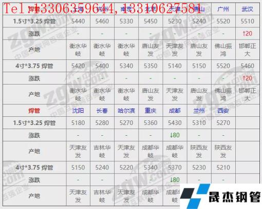 全國15個主要市場4寸*3.75 焊管平均價格5303元/噸,較上個交易日下調4元/噸。