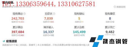 截止3月14日下午1點52分,全國現有確診病例242703例,較昨日新增4803例,無癥狀感染者7039例,較昨日新增906例。目前確診病例集中在吉林、長春、青島、深圳、寶雞、天津、上海、廊坊、滄州、西安等地,上述地區及周邊關聯地區不斷上調防控疫情等級。