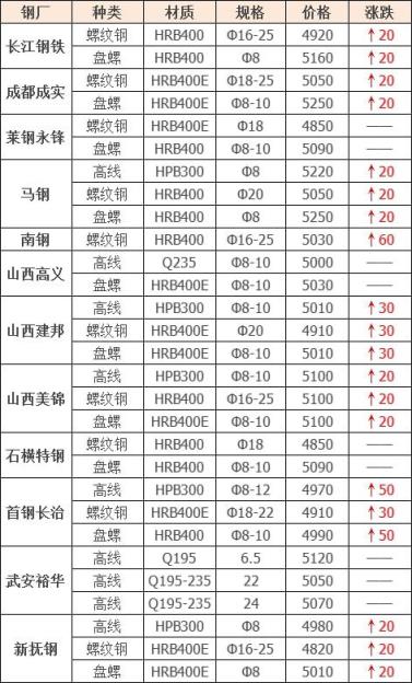 3月18日廣東東日特鋼漲60,不含稅到廠價:鋼筋切粒3550,邊角料3520,純鋼筋頭,模具鋼,優(yōu)重,馬蹄鐵3500,冷熱軋,重廢,機械生鐵3450,中厚剪3300-3400,單位:元/噸。